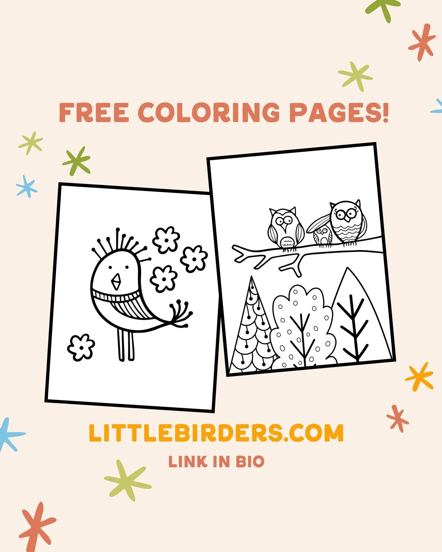 If your little birder enjoyed these free pages, you’ll find even more bird friends inside our full Little Birders coloring book.